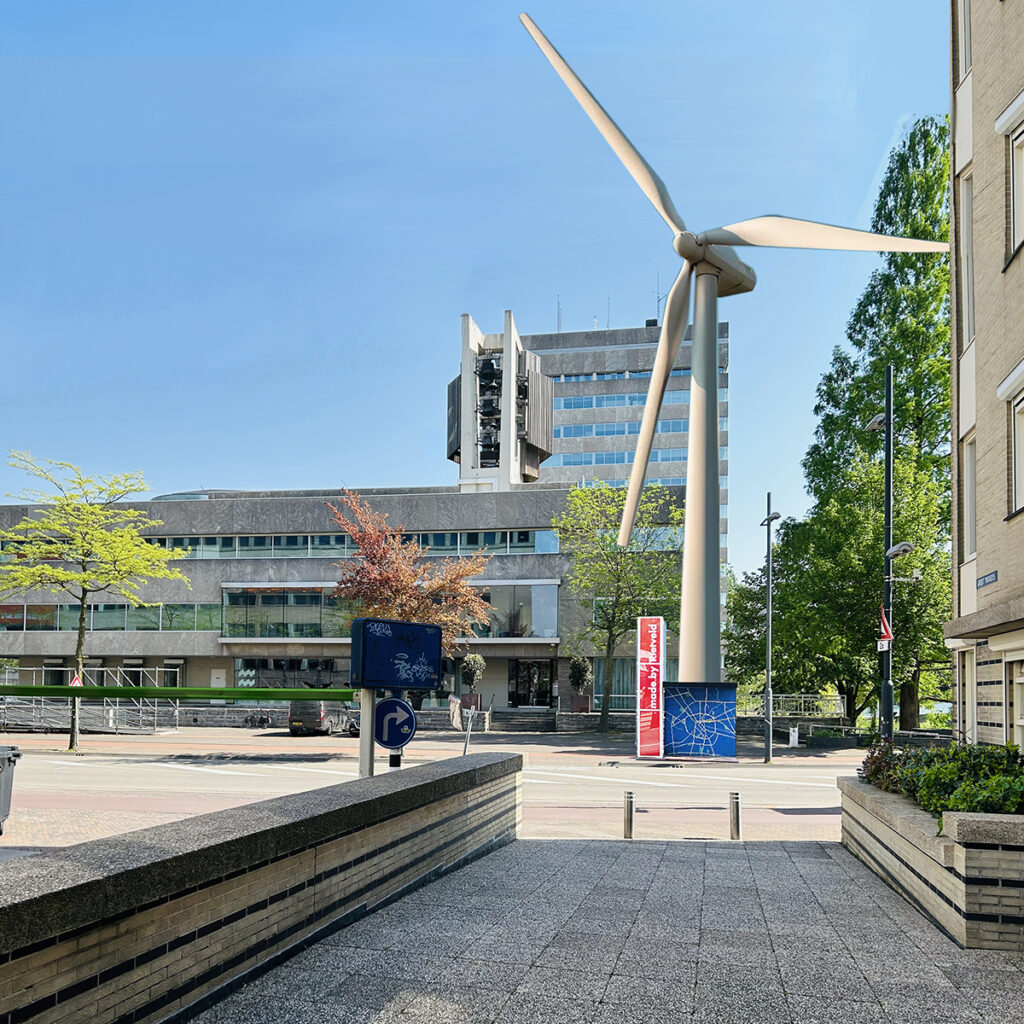 De jaarlijkse wisselexposities in de bushalte kunnen hierbij gewoon doorgaan. De opgewekte (dwz. positief gestemde) voltages van de windmolen zullen grotendeels worden afgenomen door het belendende stadhuis.